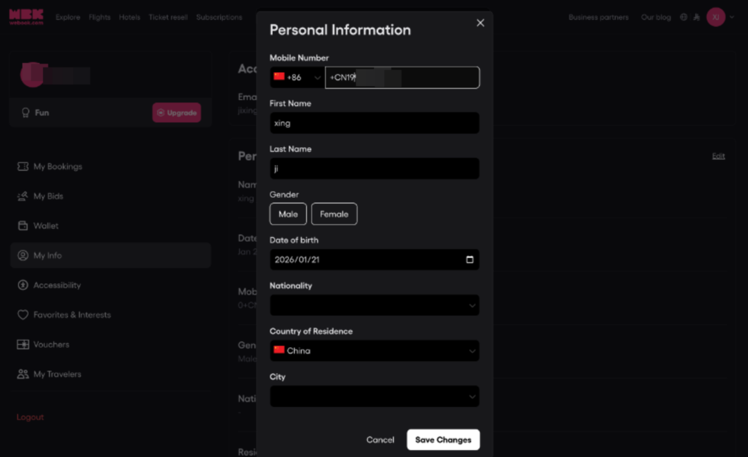 记者在购票网站已注册账号(网站截图)